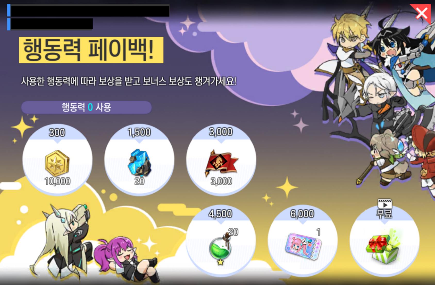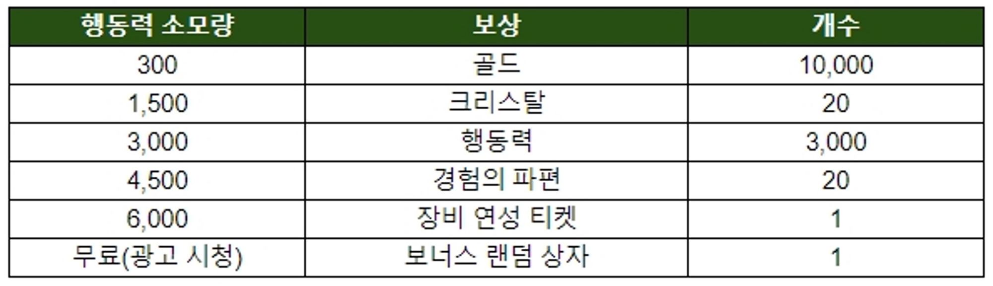 - 사용한 행동력에 따라 보상을 받고 보너스 보상도 챙겨가세요!
