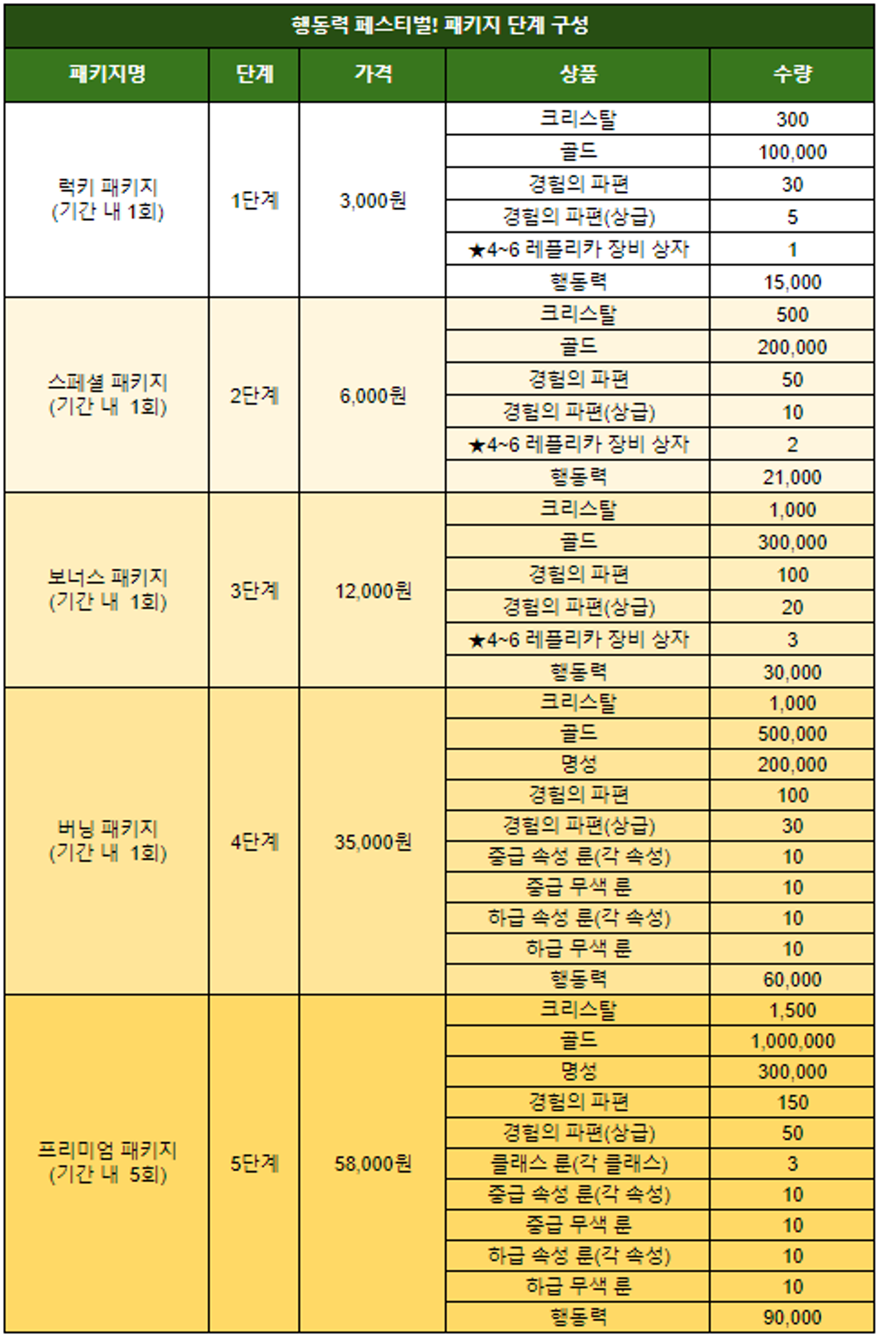 ※ 행동력 페스티벌 패키지는 각 단계를 순차적으로 구매해야 다음 단계의 패키지를 구매할 수 있습니다.