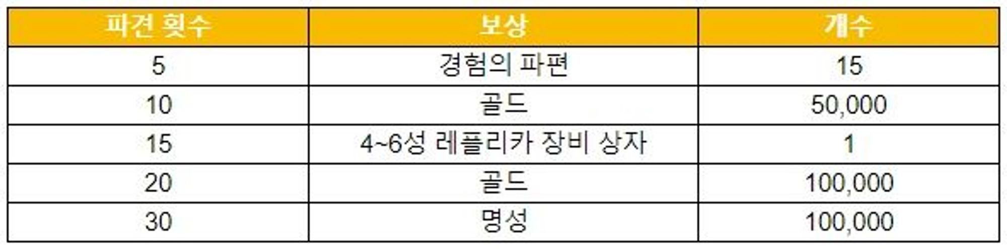 - 이벤트 기간 동안 파견을 보내면 보상을 드려요!