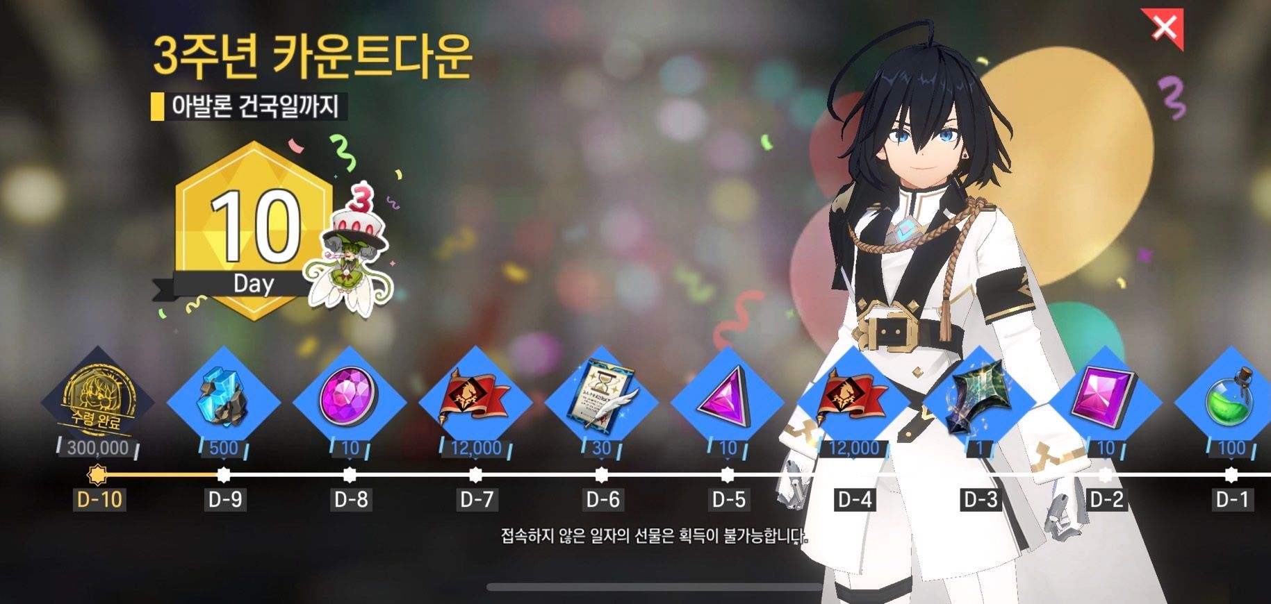※ 3주년 카운트다운 출석부 기간 및 갱신 기준이 변경되었습니다. (03/08)