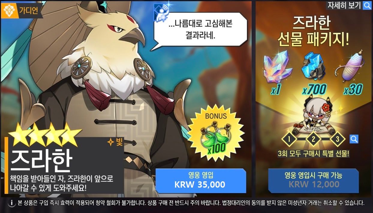※ 영웅 영입 패키지는 구입 즉시 효력이 적용되어 청약철회가 불가한 점 참고 부탁드립니다.