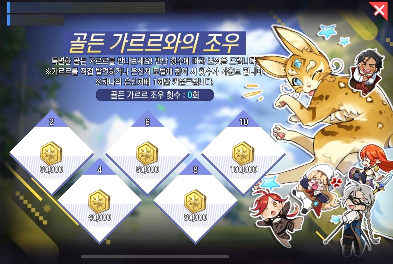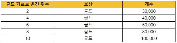 - 환상종 대소동 기간 동안 골든 가르르를 발견하고 전투에 참여한 횟수에 따라 보상을 드립니다.