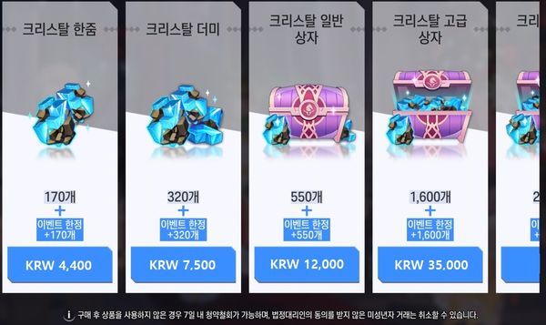 ※ 1+1 혜택 상품의 청약 철회 시에는 추가 지급된 크리스탈을 보유하고 있어야 청약철회가 가능합니다.