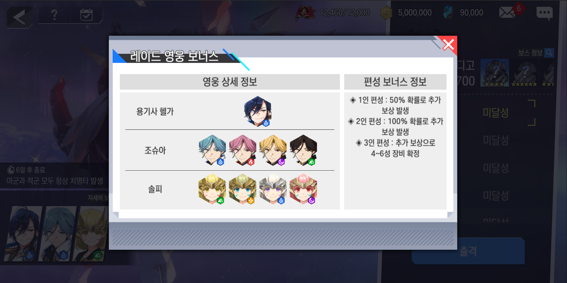 - 획득 가능 보상: 골드, 크리스탈, 행동력, 경험의 파편, 명성, 상급 속성 룬(중 1개), 중급 속성 룬(중 1개), 하급 속성 룬(중 1개), 인연의 돌, 시간의 실타래