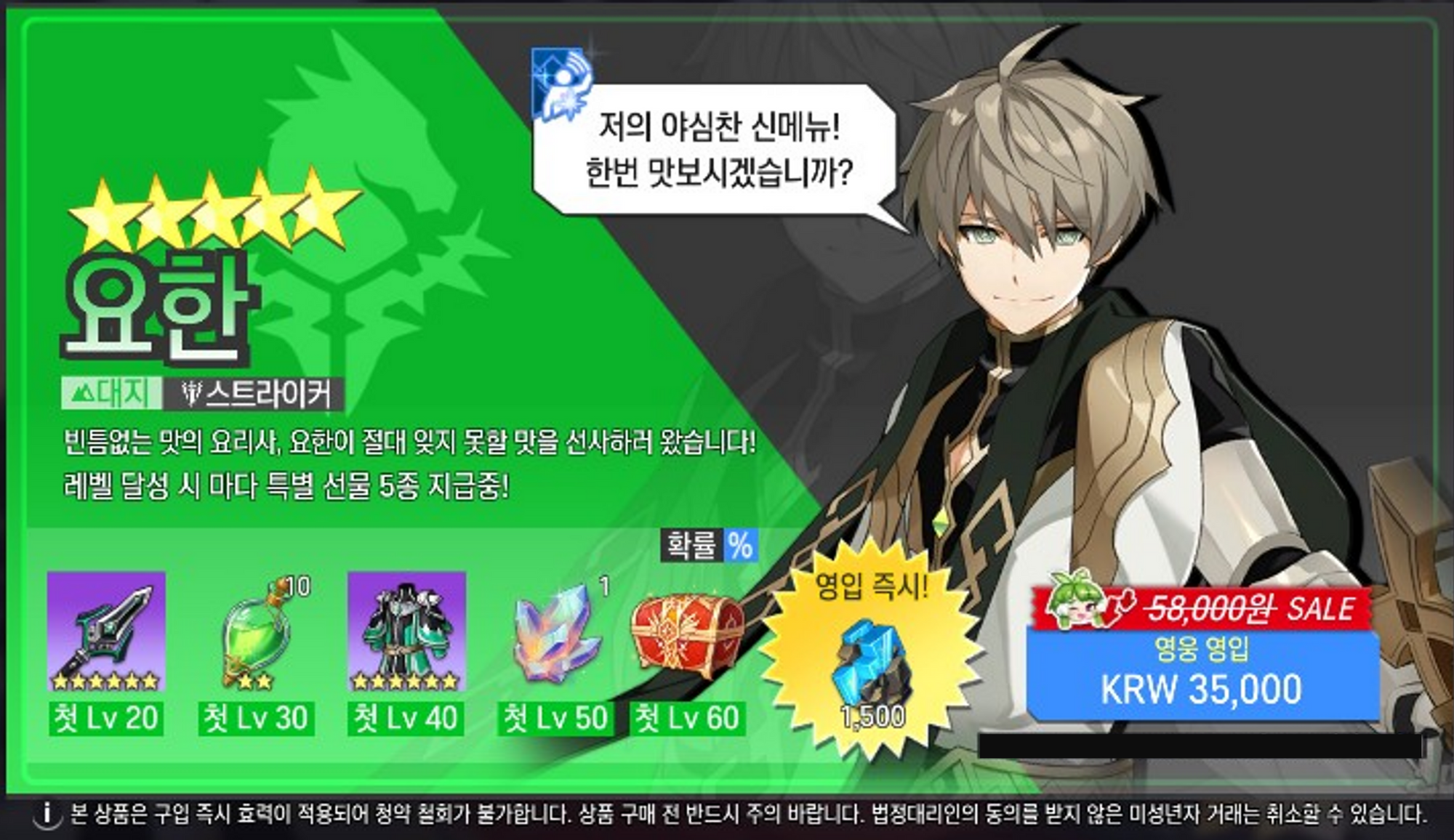 - [대지] 요한은 신규 영웅 패키지 구매로 영입이 가능합니다.
