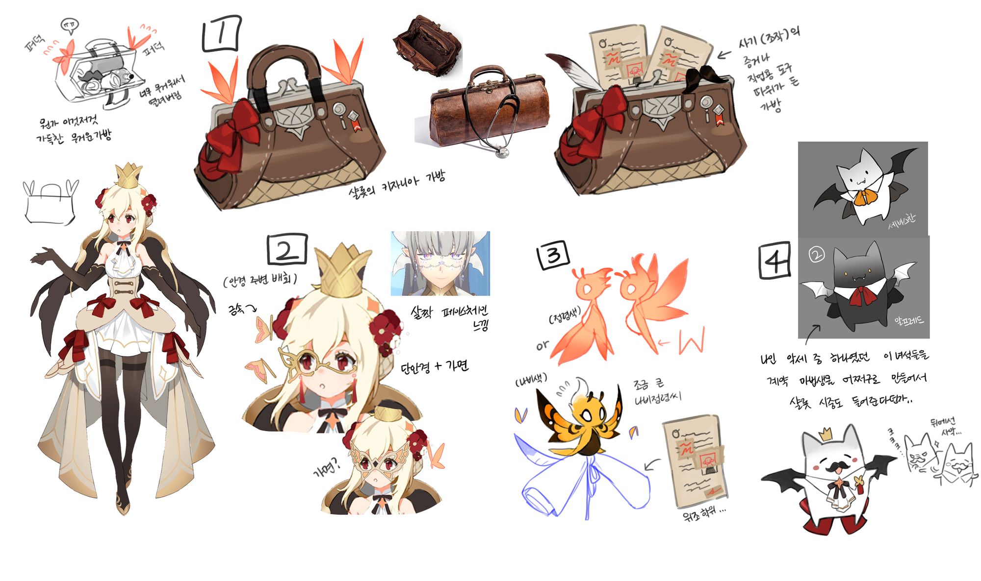 그리고 [불] 샬롯의 전용 스타일 아이템 제작에 있어 다양한 시안이 있었는데요, 저희만 보기 아까워서 가져와봤습니다. (예시 이미지 중에서는 캐릭터성과 개발난이도를 고려하여 최종적으로 2번이 선정되었습니다.)