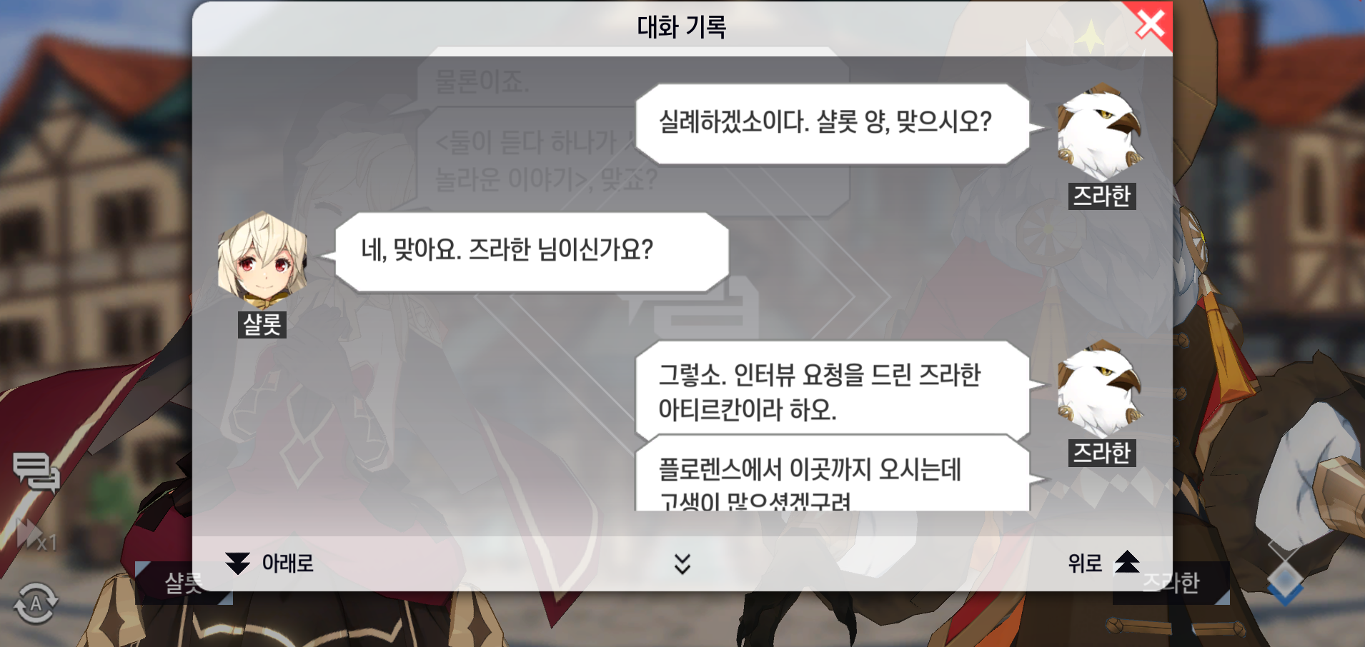 기존의 대화씬에서는 터치를 해야 말풍선이 넘어갔었는데, 대화 흐름에 맞추어 자동으로 진행되는 기능이 추가될 예정입니다. 또한, 지나간 대화 내용을 쉽게 찾아볼 수 있는 ‘대화 기록’도 함께 업데이트됩니다.