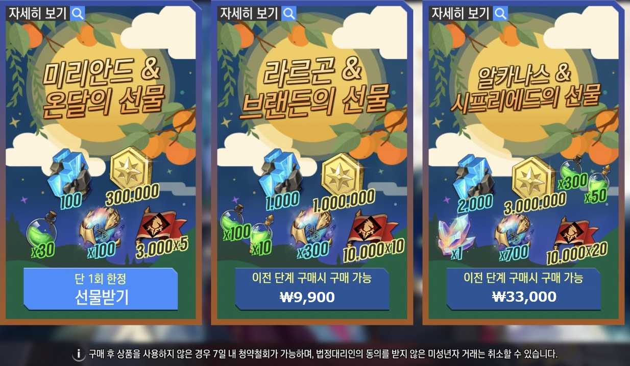 - 내용 : 이벤트 기간 동안 달맞이 선물 교환회 패키지 판매가 진행됩니다.