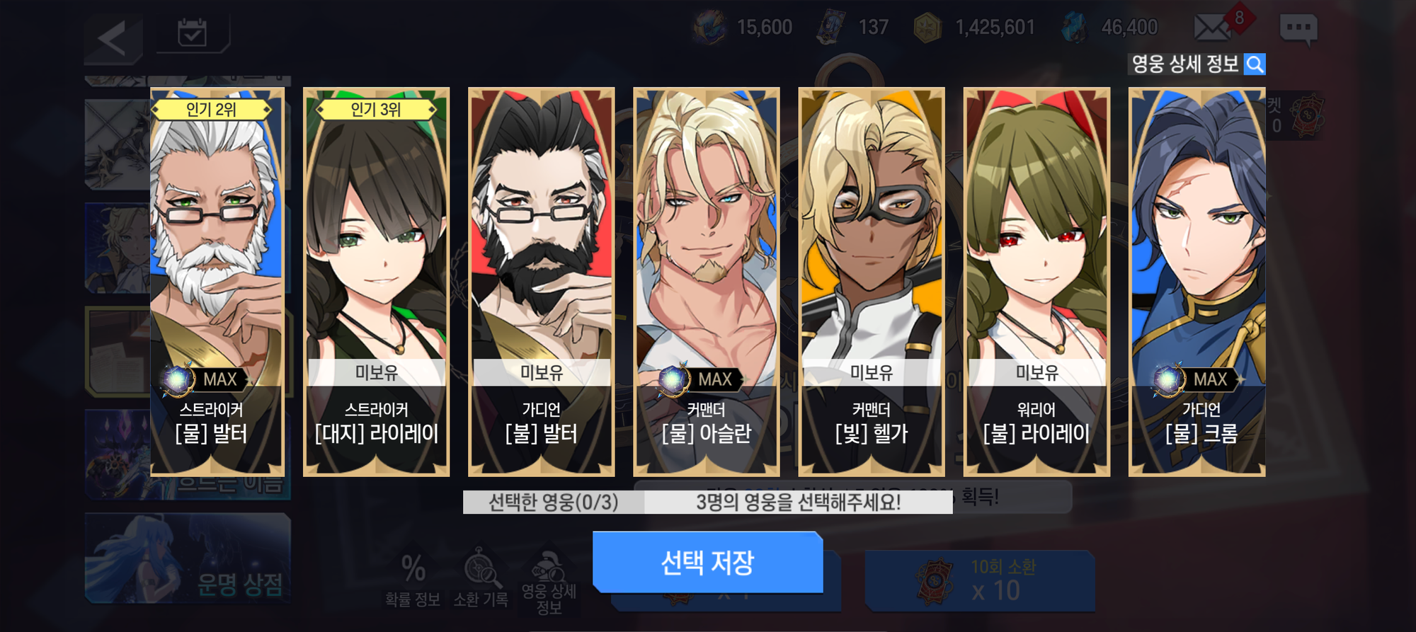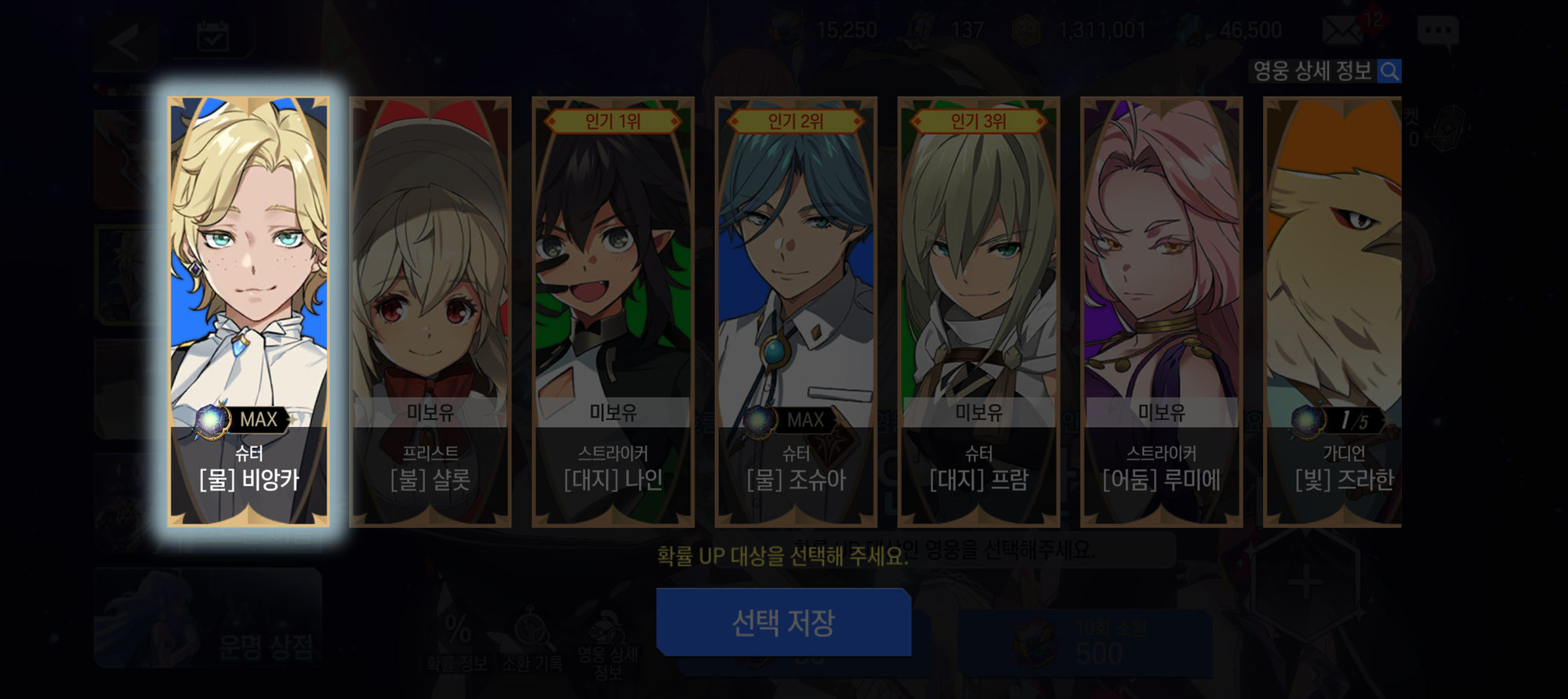 - 선택된 영웅은 소환될 확률이 증가합니다.