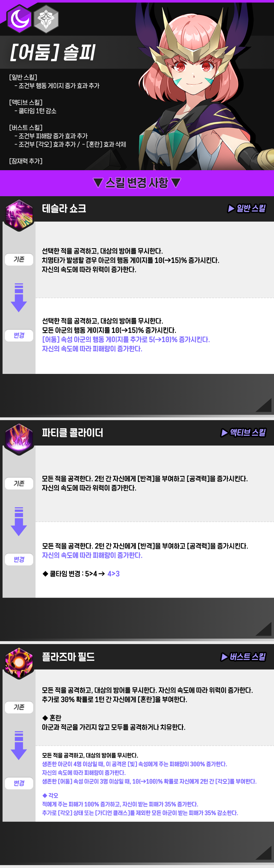 - 기존의 회복 AI가 보호막 AI로 변경되어 재앙의 경계 콘텐츠에서 체력을 잃은 영웅이 없을지라도 버스트 스킬을 사용할 수 있게 됩니다.