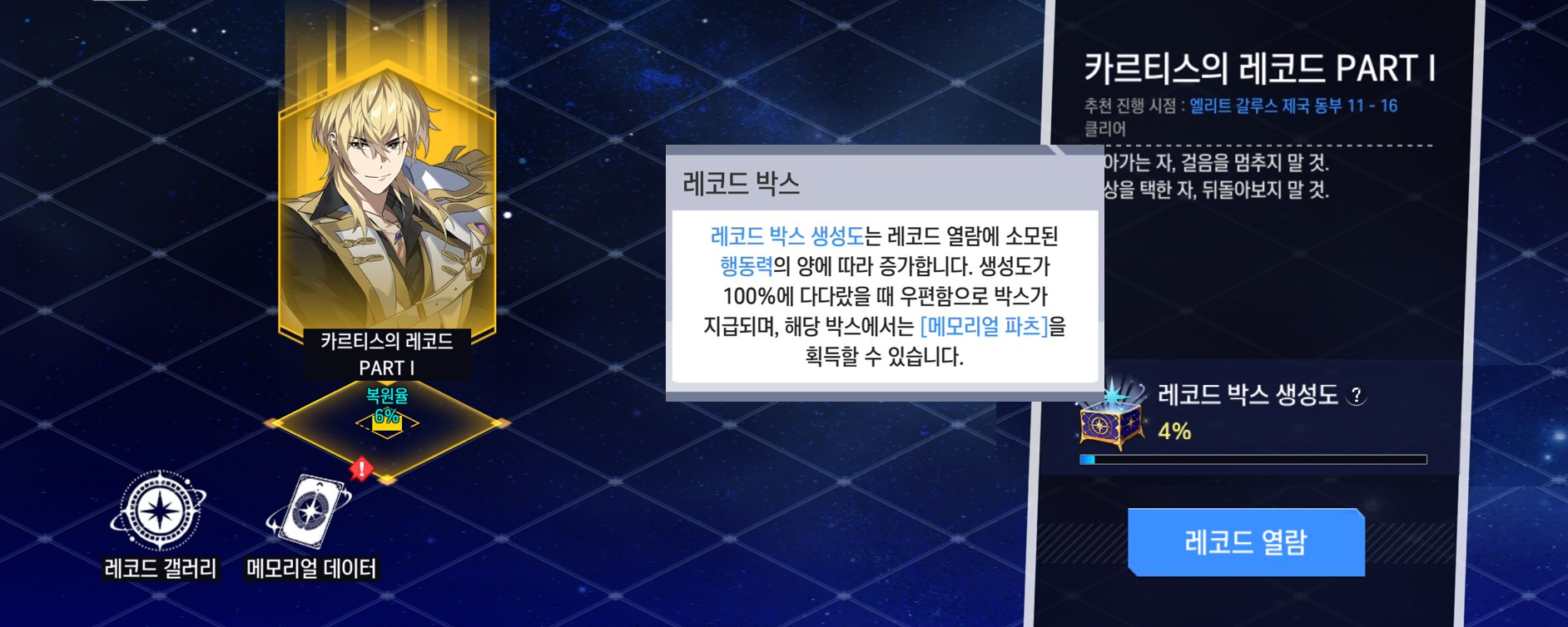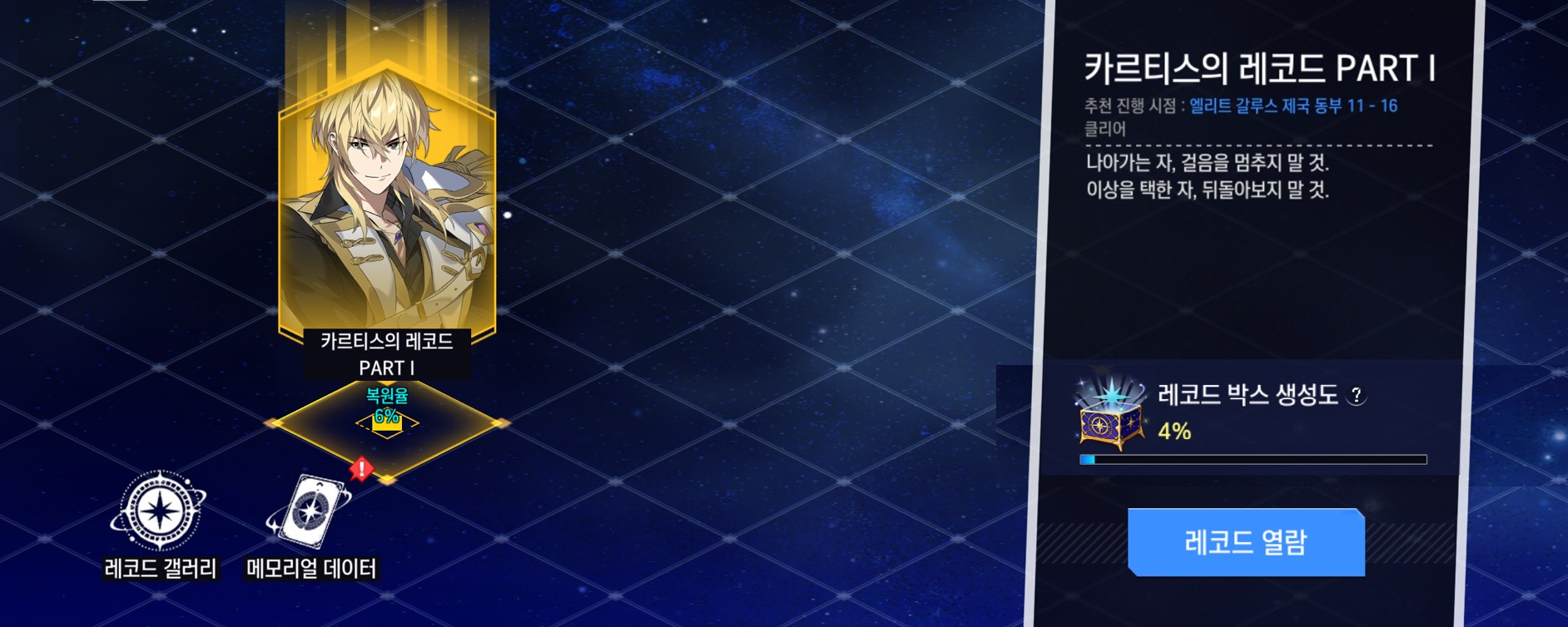 ※ 스토리 패스 [카르티스 레코드 Part Ⅰ]는 노말 8-16 이후 오픈됩니다.