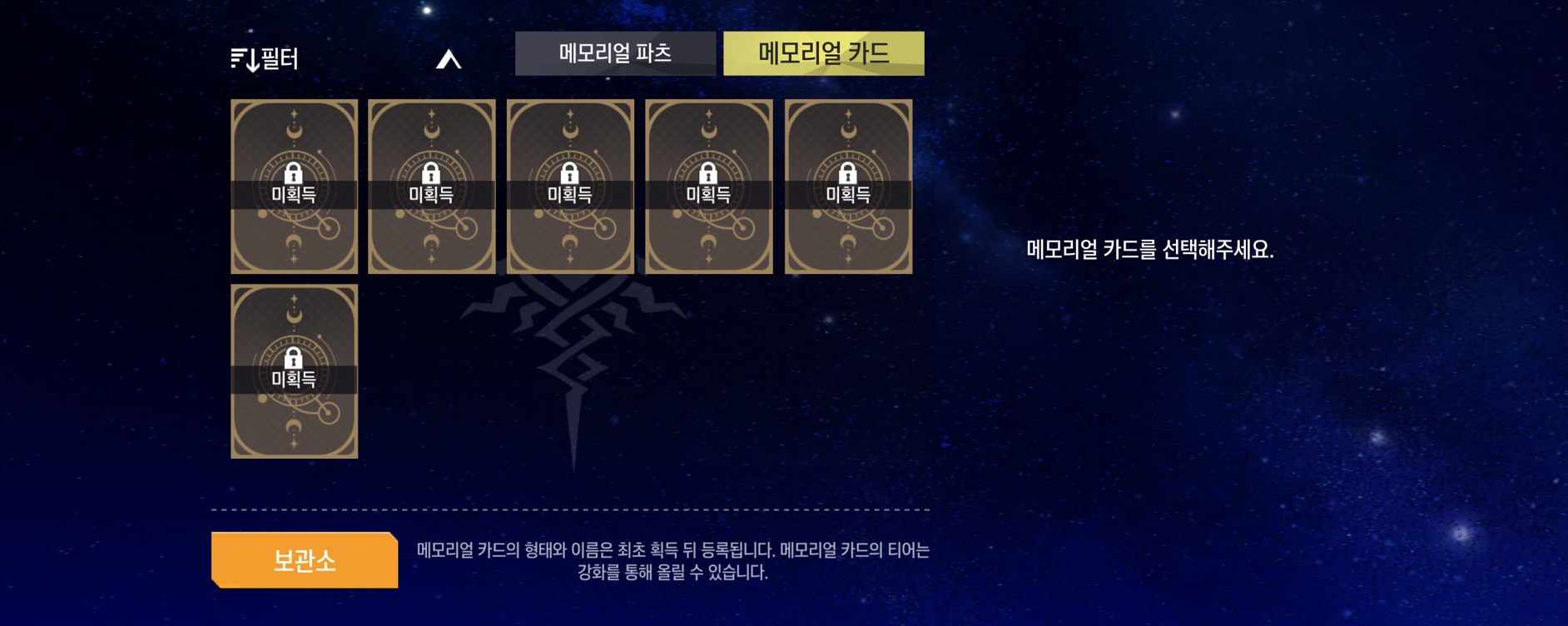 - [메모리얼 카드]에 대한 정보는 [메모리얼 데이터 > 메모리얼 카드] 를 통해 획득 전에 미리 확인이 가능합니다.