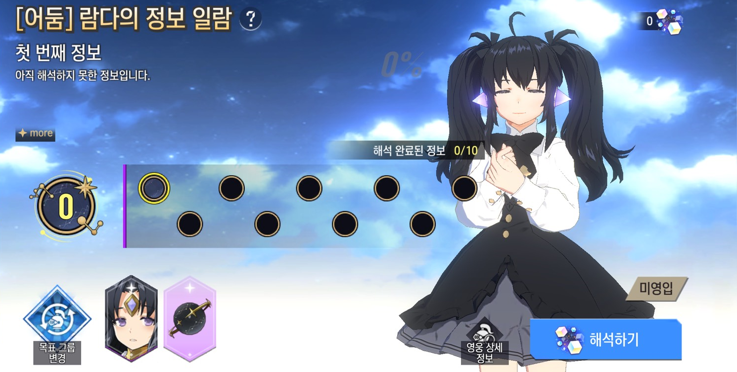 - 전체 해석이 완료되어 [영웅 및 아티팩트]를 획득한 경우, [초기화 하기]버튼을 통해 언제든지 다시 진행할 수 있습니다.