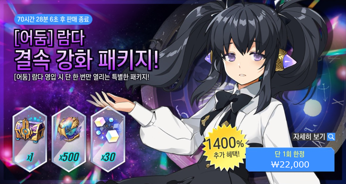 ※ [어둠] 람다를 영입 후 최초 1회 구매할 수 있는 패키지입니다.