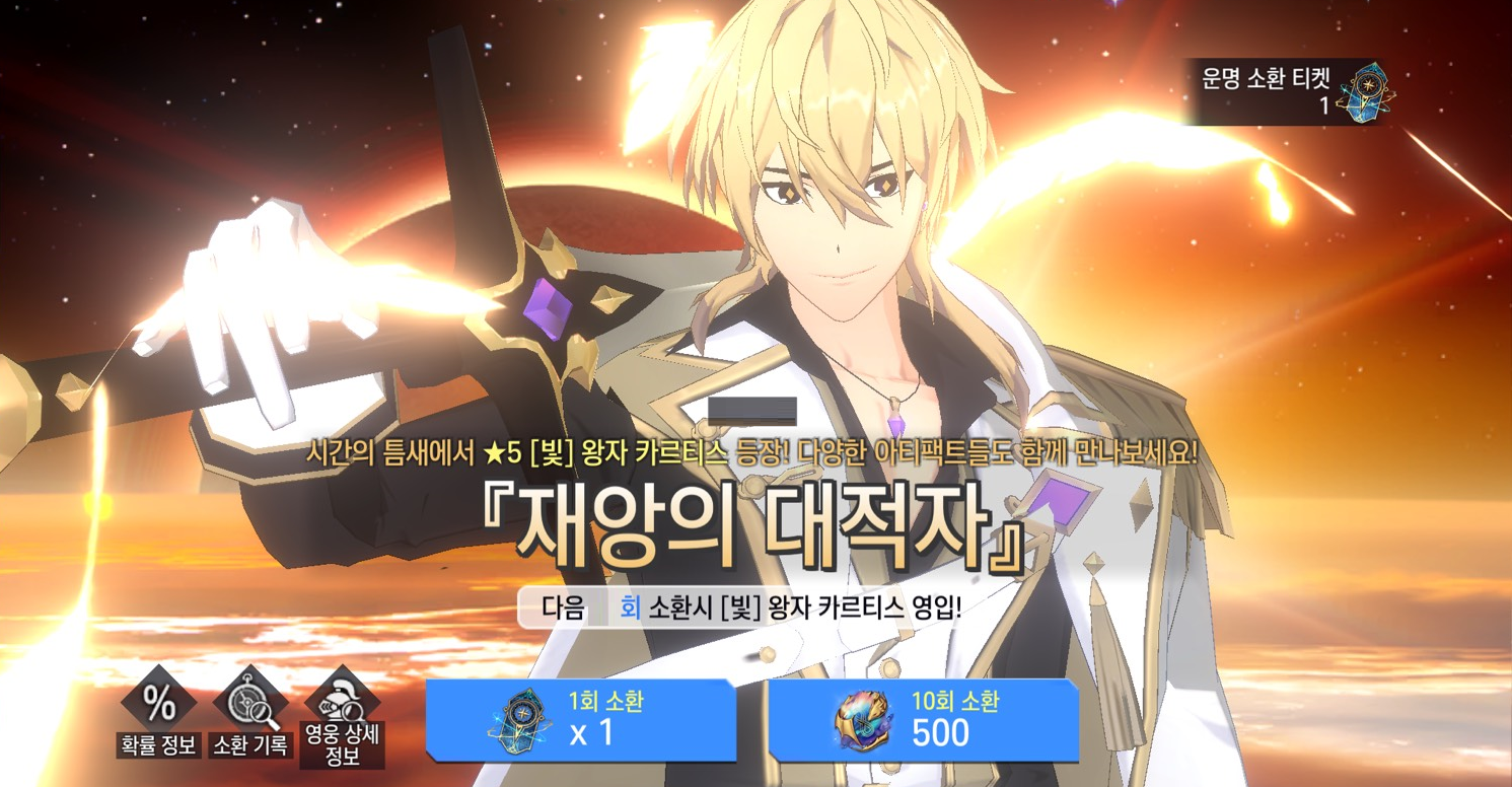 ※ 운명 소환에서 획득 가능한 영웅 및 아티팩트는 다른 운명 소환에서도 소환이 재진행될 수 있습니다.