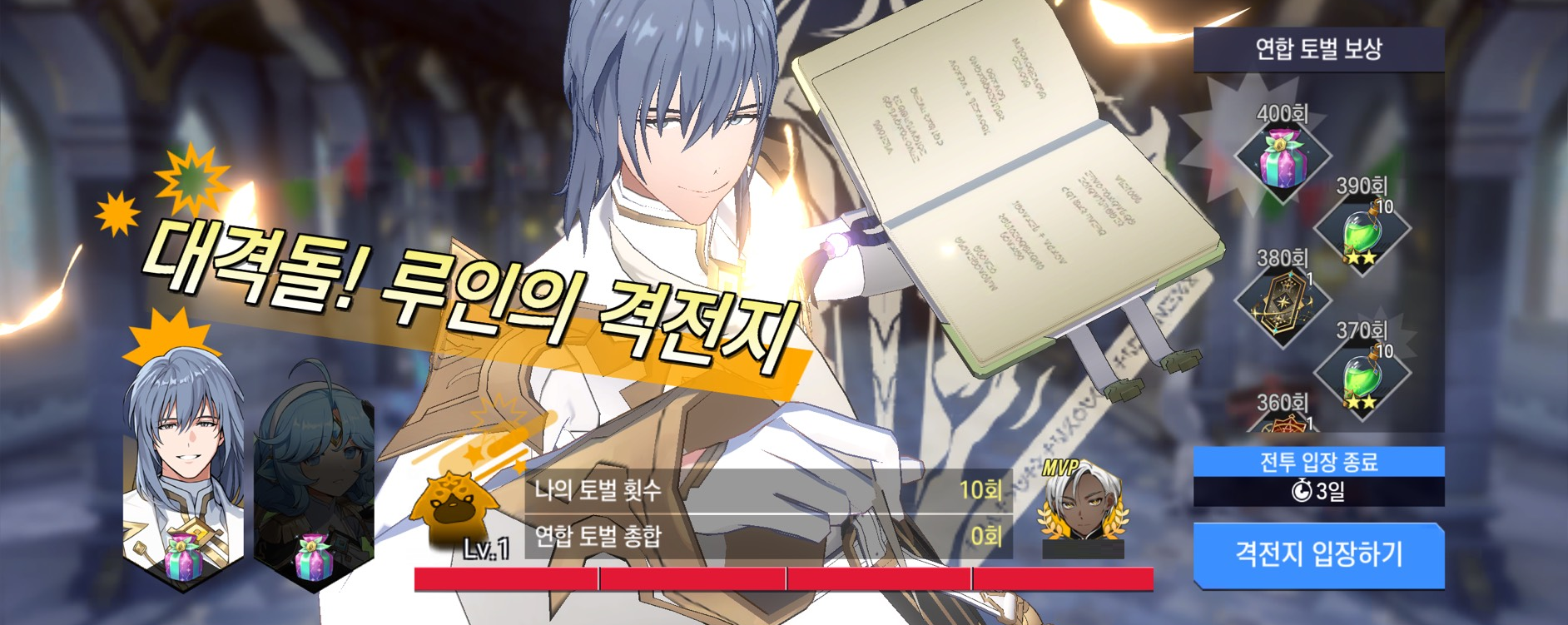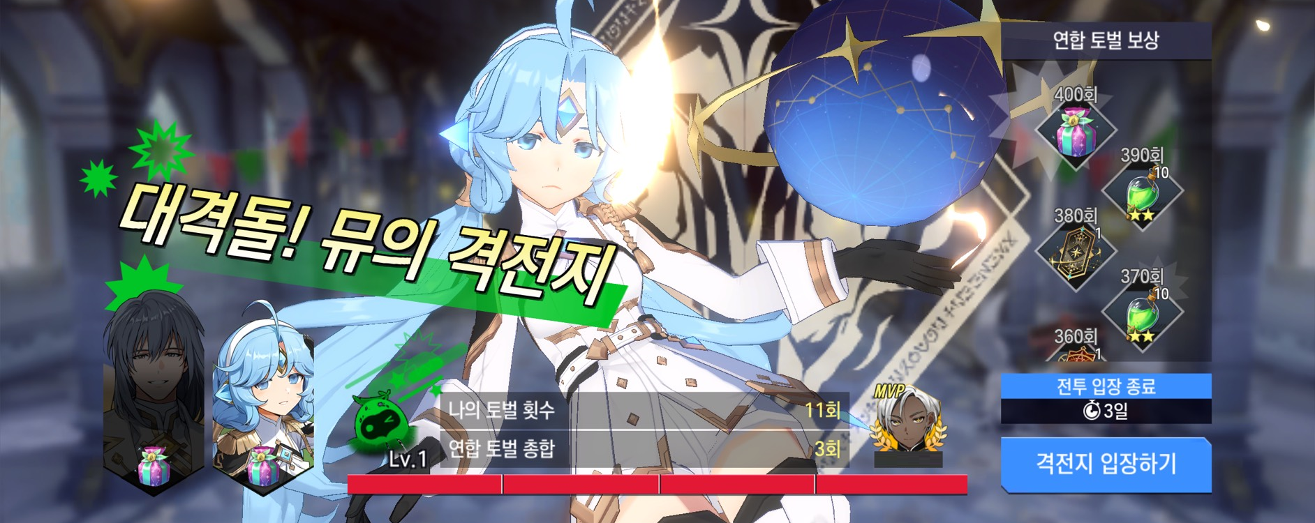 - ‘대격돌! 기사단’ 미션 패스의 미션을 달성하여 루인과 뮤의 기사단 코스튬 상자 등 단계별 다양한 보상을 획득해 보세요!