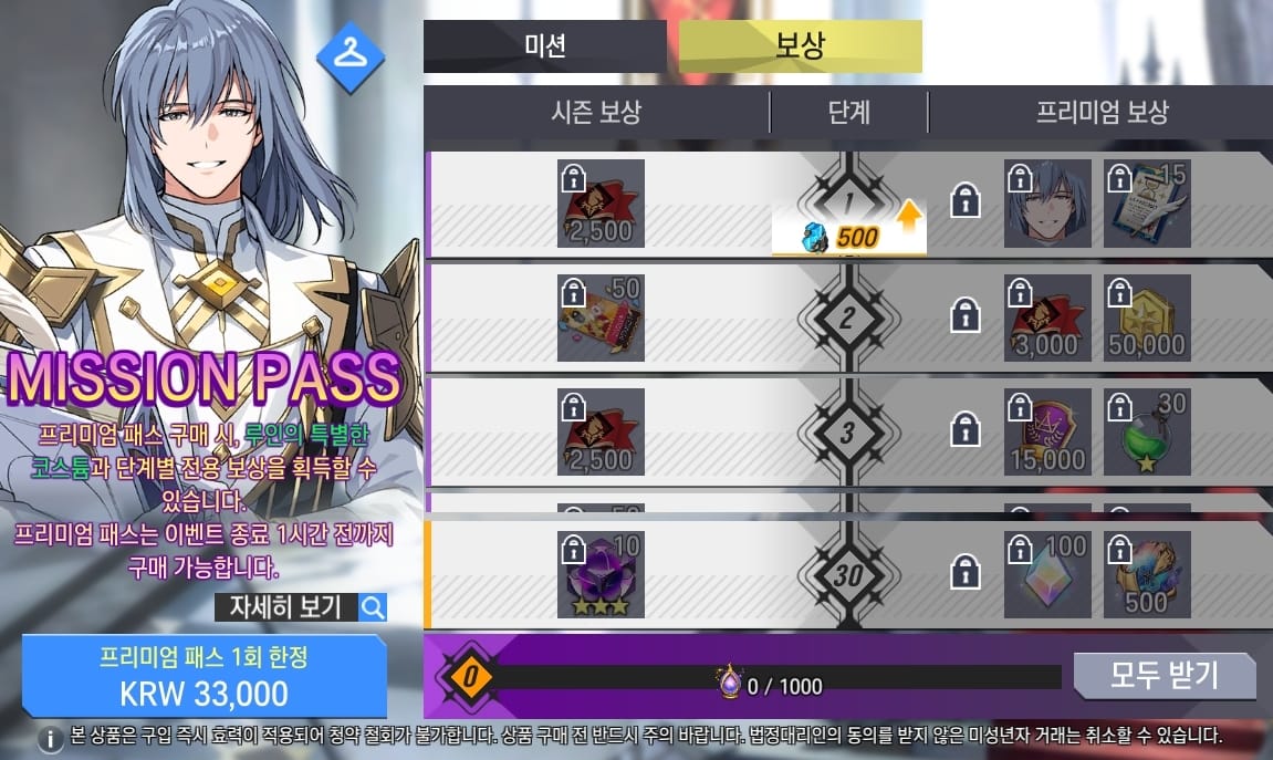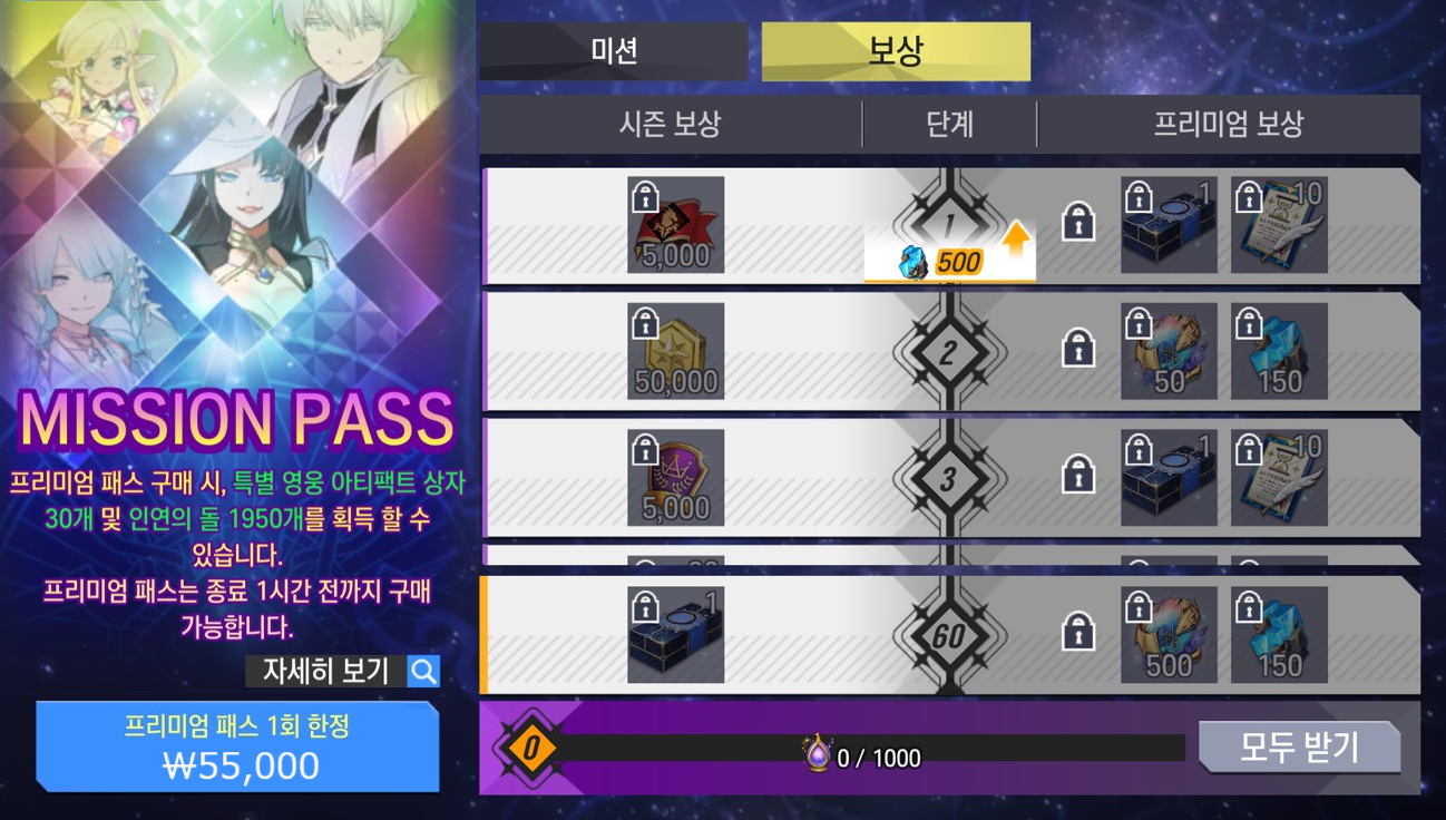 ※ 유료 패스 보상은 받기 버튼을 누르면 우편함의 상점 탭으로 지급됩니다.