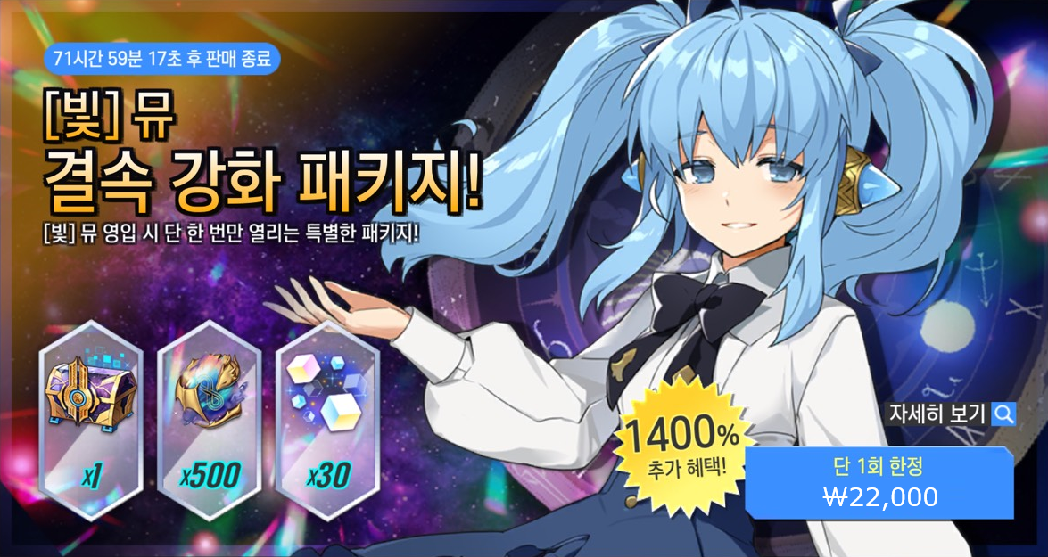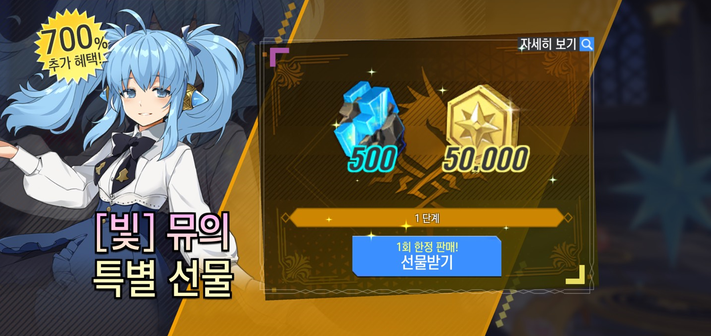 ※ [빛] 뮤를 최초 영입 후 1회구매할 수 있는 패키지입니다.