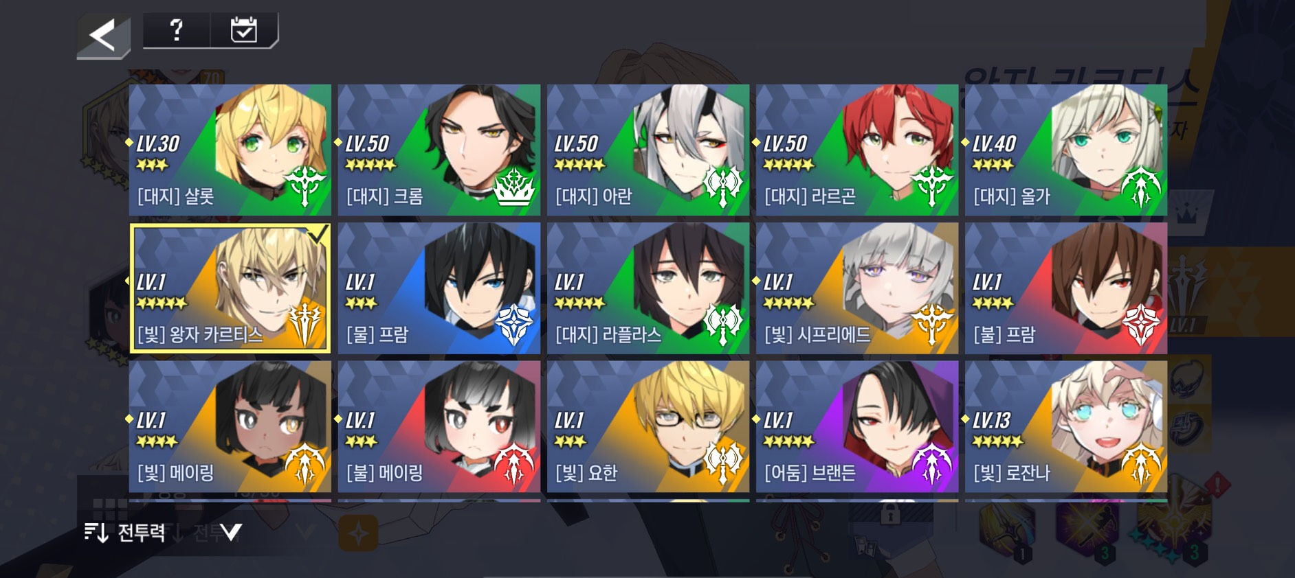 - 영웅 목록에서는 모든 영웅의 영입 및 육성 상황을 확인할 수 있습니다.