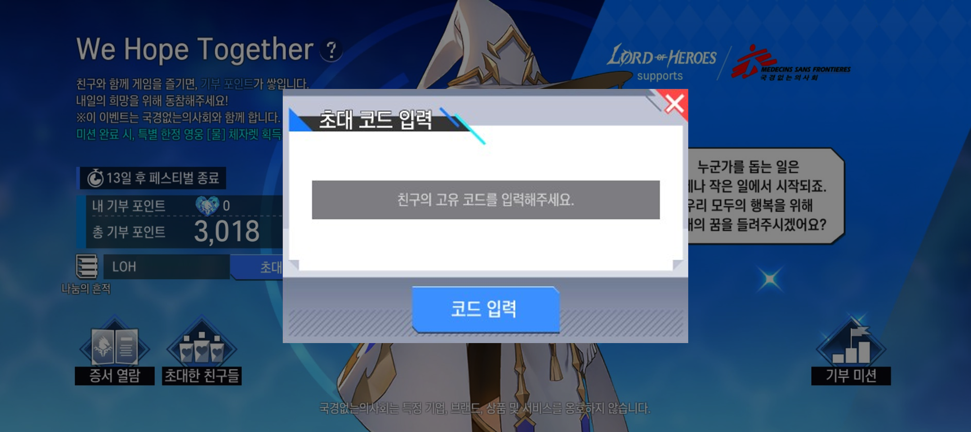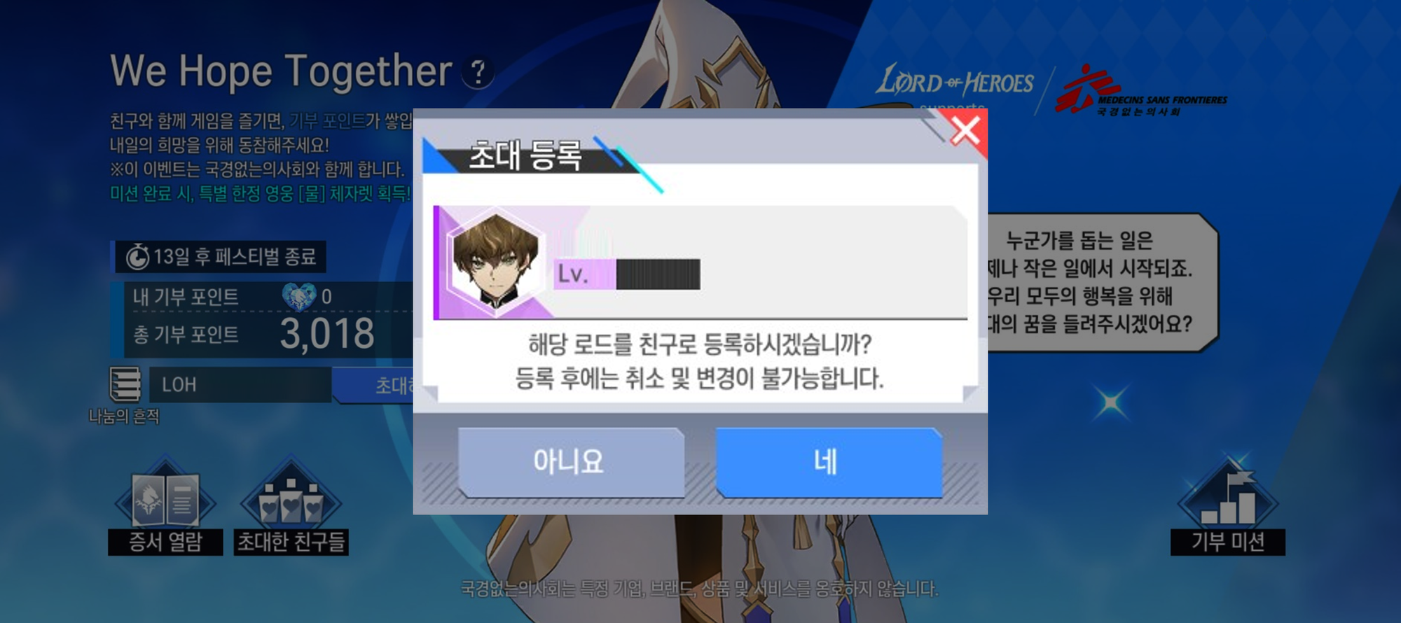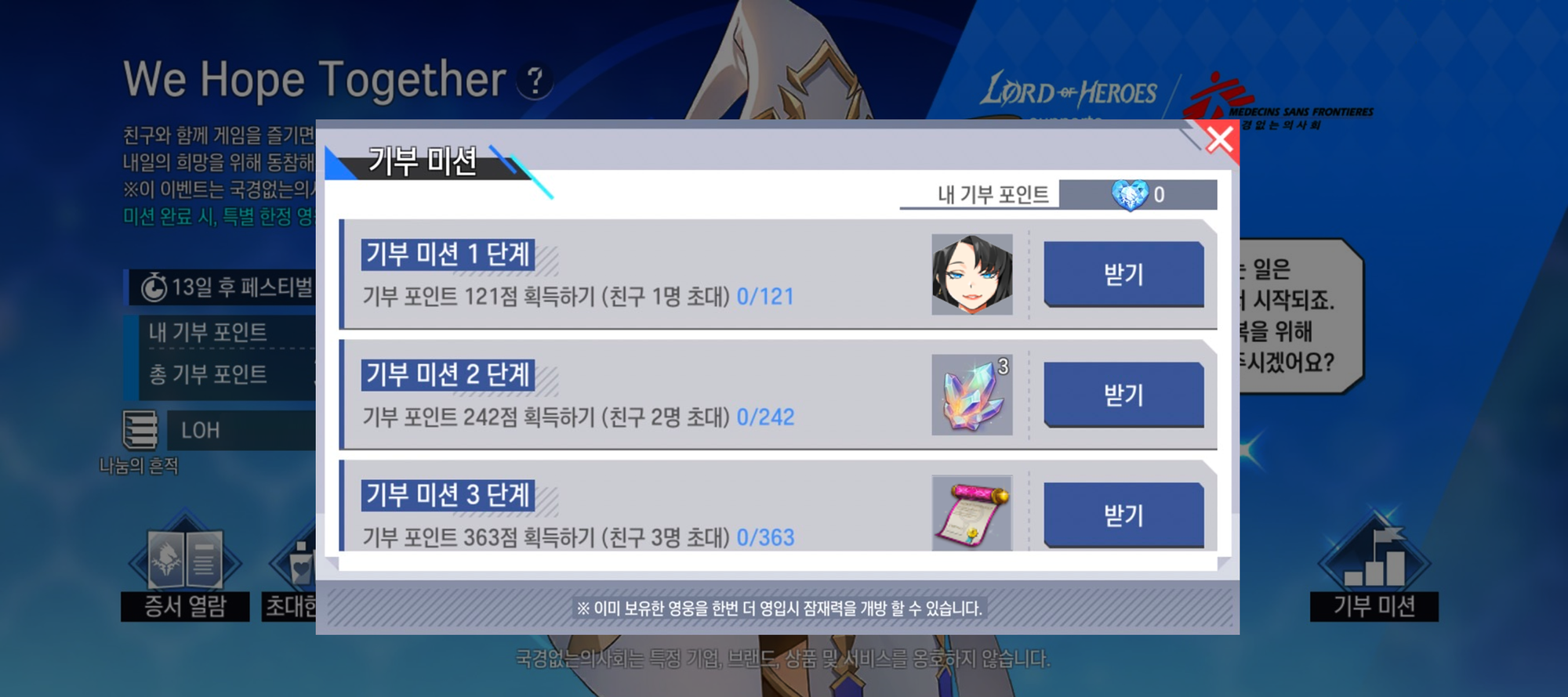 - ‘친구 초대 페스티벌’ 미션 패스의 미션을 달성하여 특별 영웅 아티팩트, 인연의 돌 등 다양한 보상을 획득해 보세요!