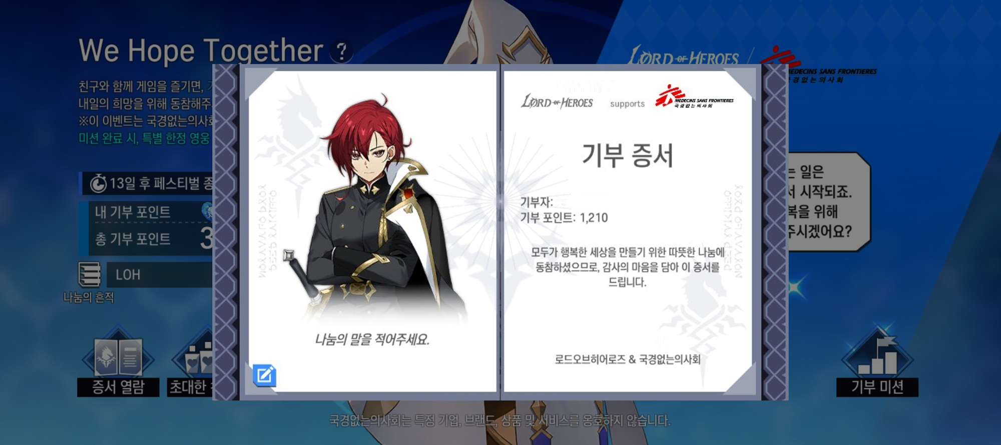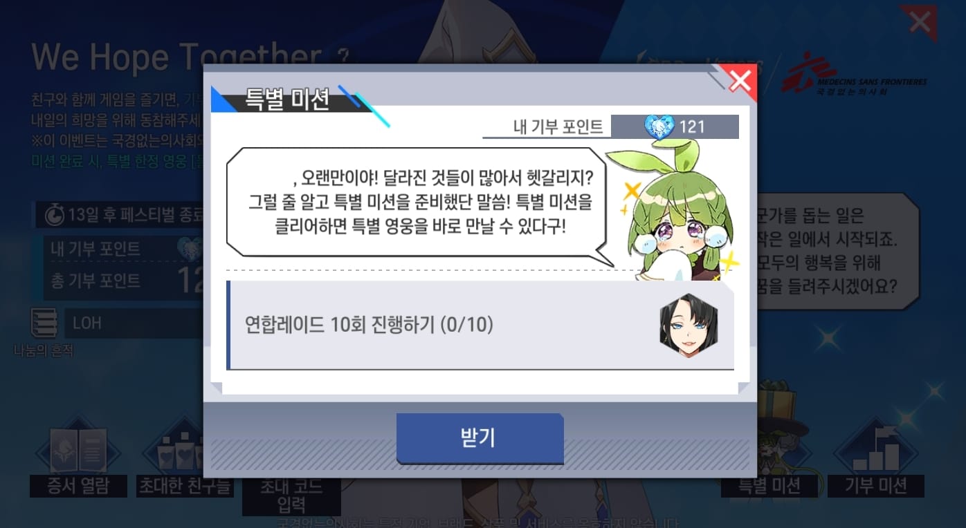 ※ 해당 패키지는 특정 조건의 각 기부 미션 단계를 클리어할 경우 구매 가능한 상품입니다.
