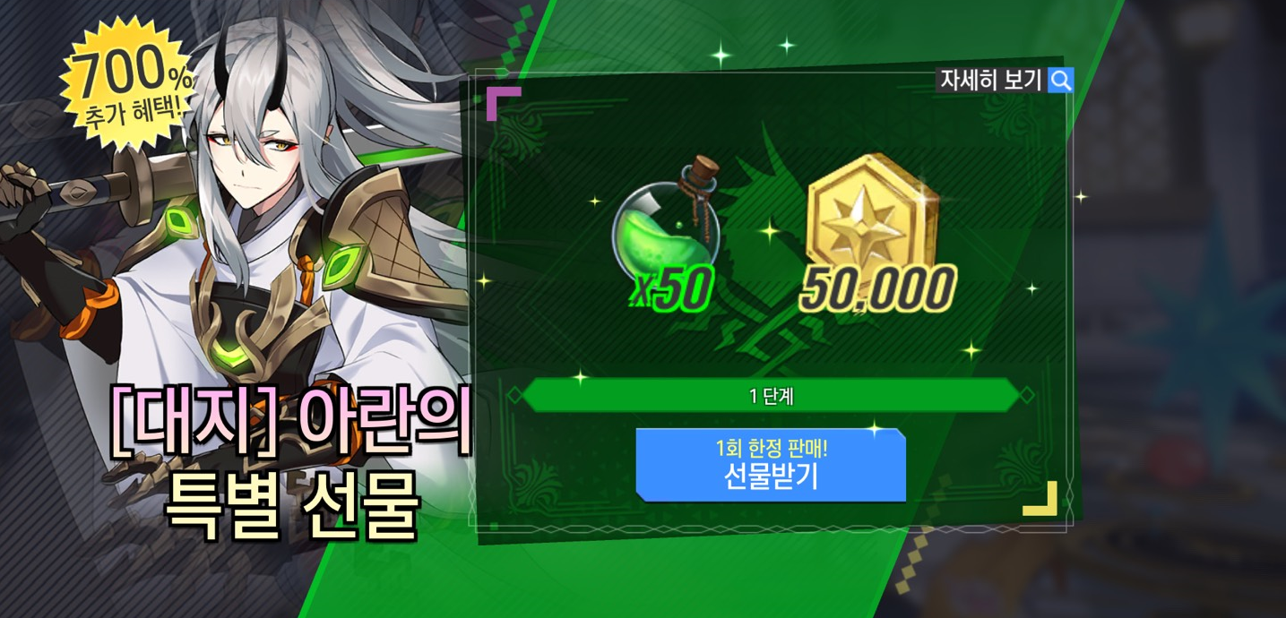 ※ 이미 [대지] 아란을 보유하고 있는 경우에는, 소환을 통해 [대지] 아란을 추가로 영입해야만 패키지가 오픈됩니다.