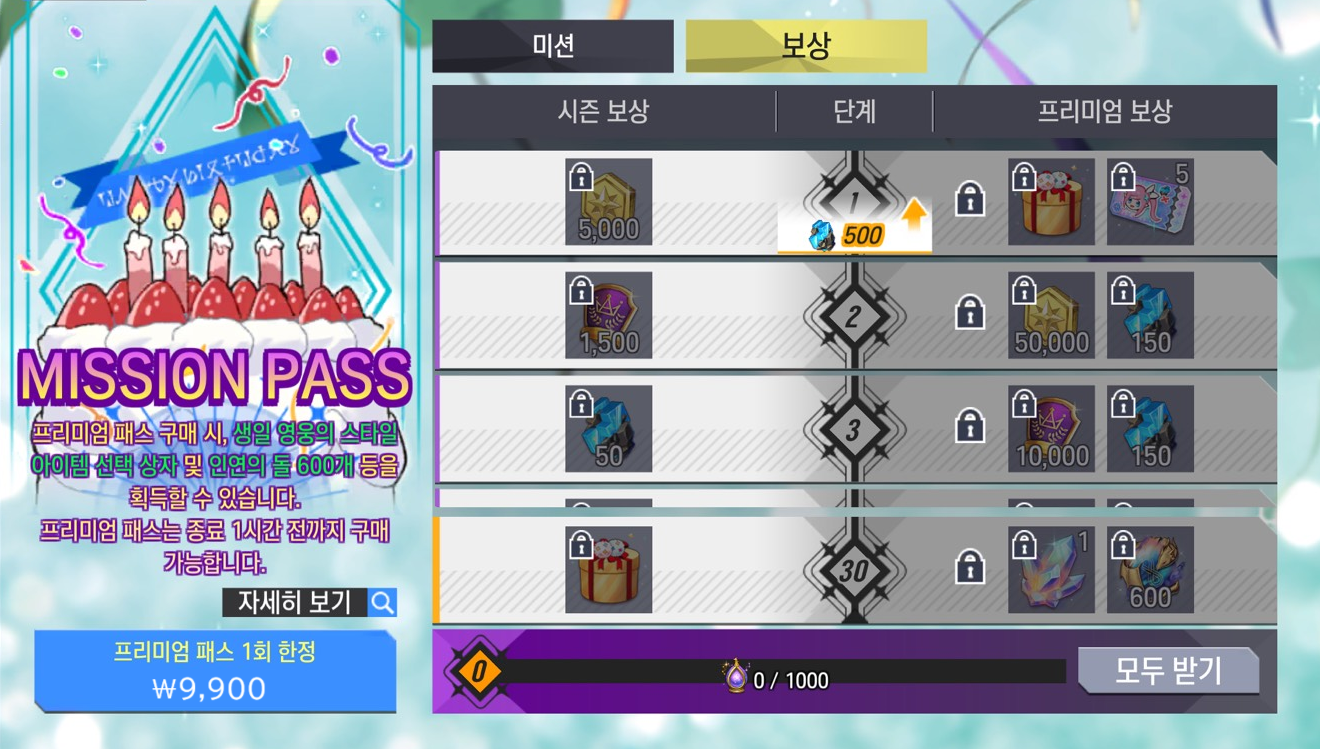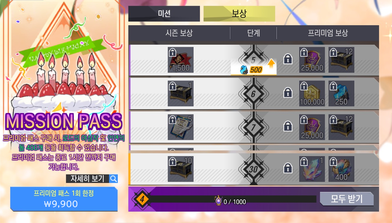 - 상품 내용 : 생일 이벤트 미션 패스의 미션을 달성하여 다양한 보상을 획득해 보세요!