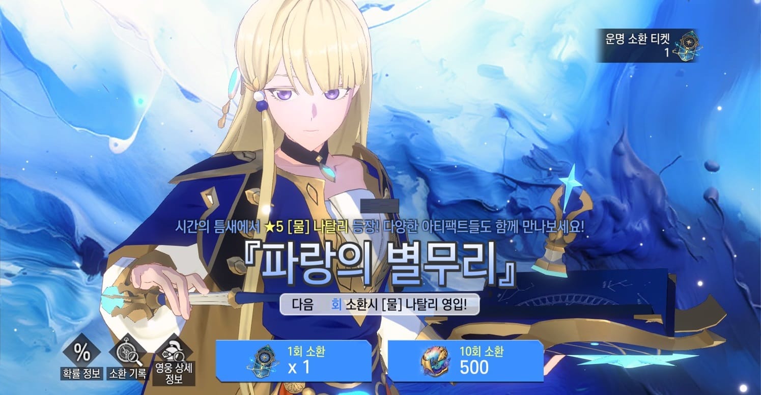 - [물] 나탈리는 [파랑의 별무리] 소환으로 영입이 가능합니다.