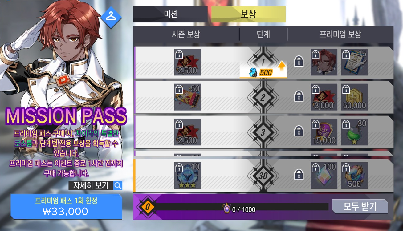 ※ 각 패스의 프리미엄 패스 구매 시 특별한 보상과 단계별 보상을 획득할 수 있습니다.