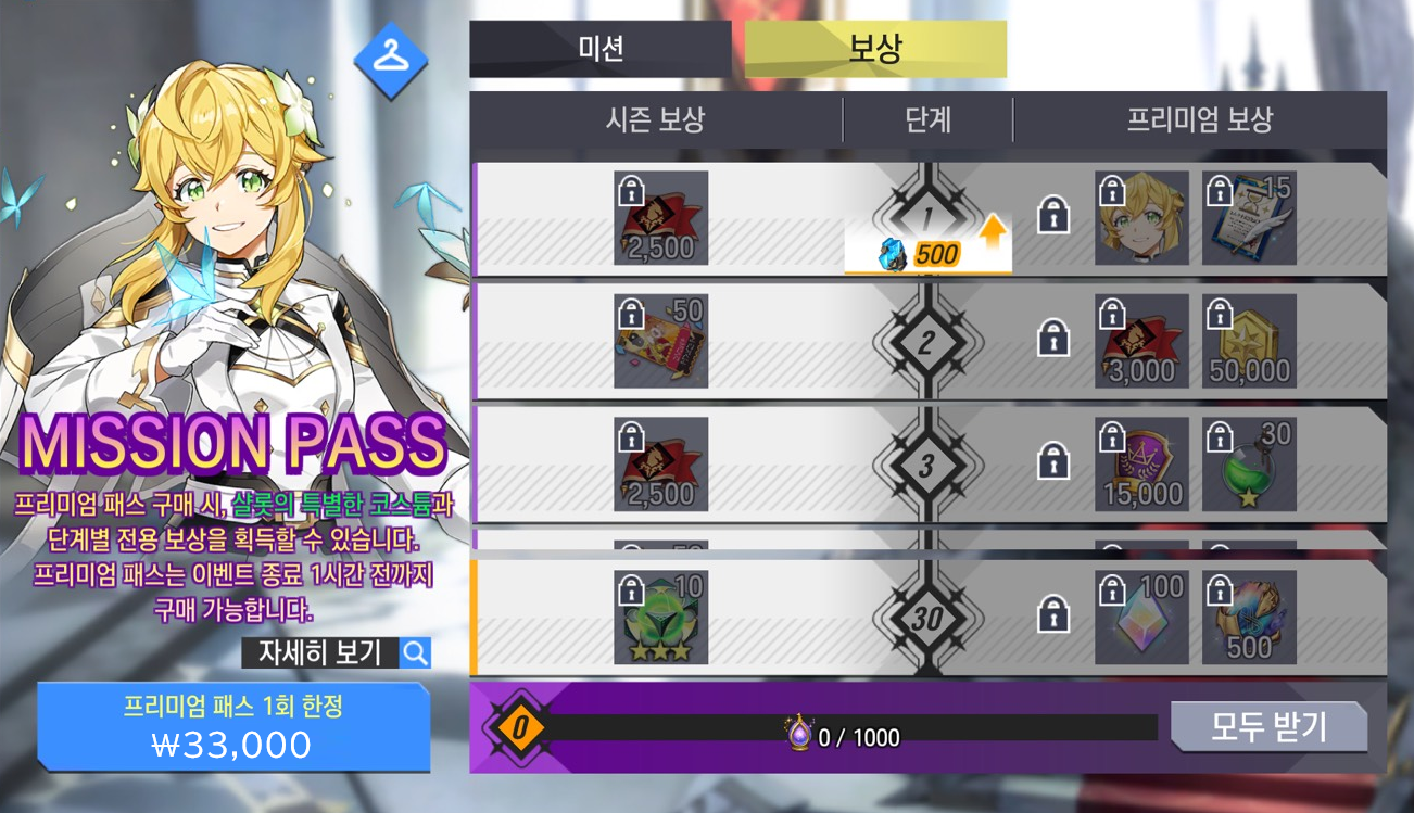 ※미션 패스 종료 1시간 전까지 구매가능합니다.