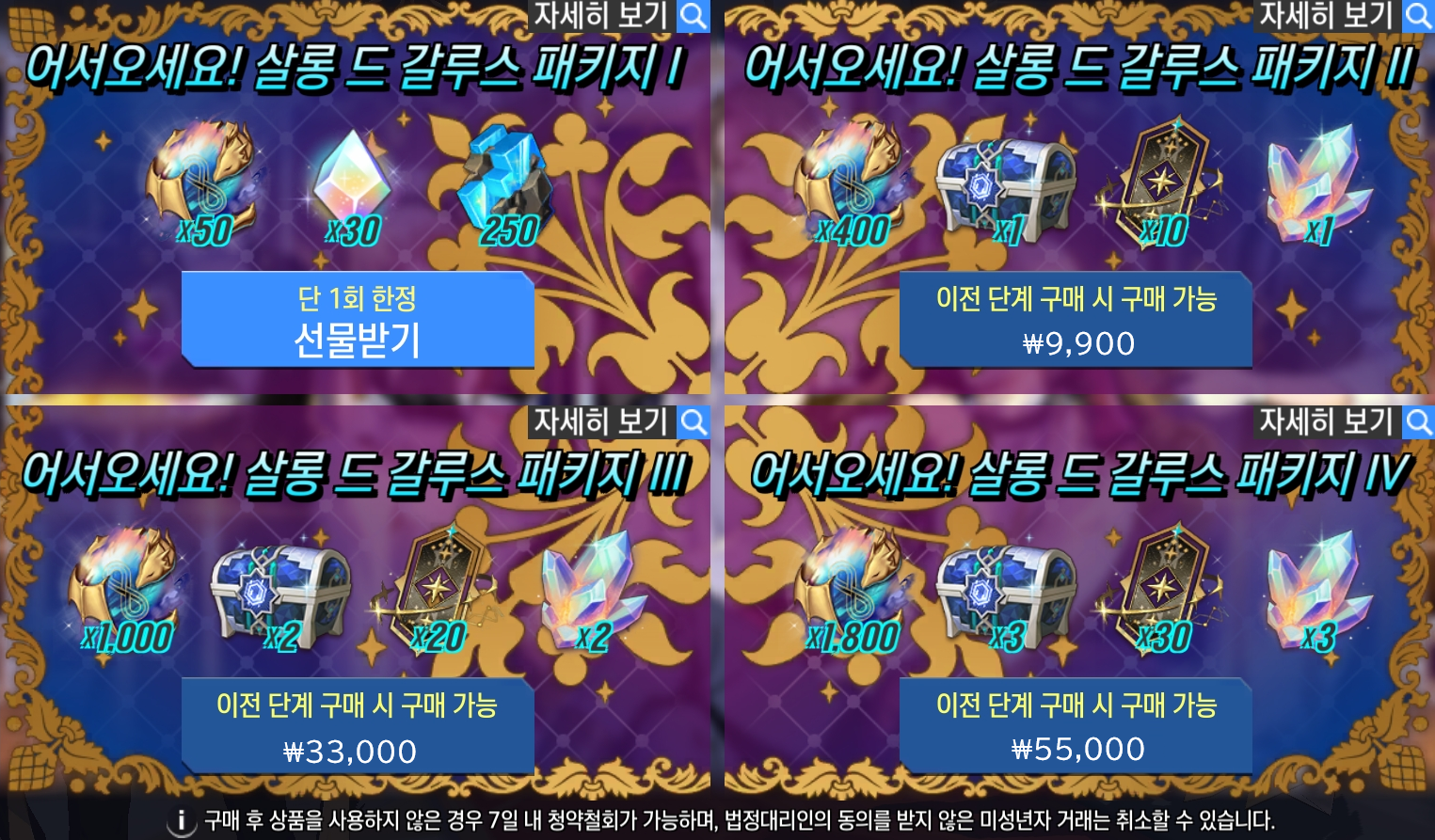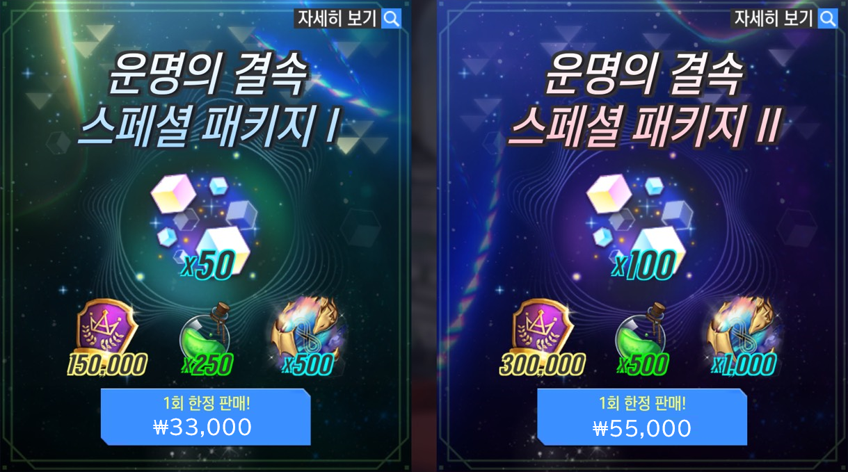 ※ 특별 선물 패키지는 총 3단계로 이루어져 있으며, 이전 단계 패키지를 구매하면 다음 단계 패키지가 노출됩니다. (예 : 2단계 구매 → 3단계 구매 가능)
