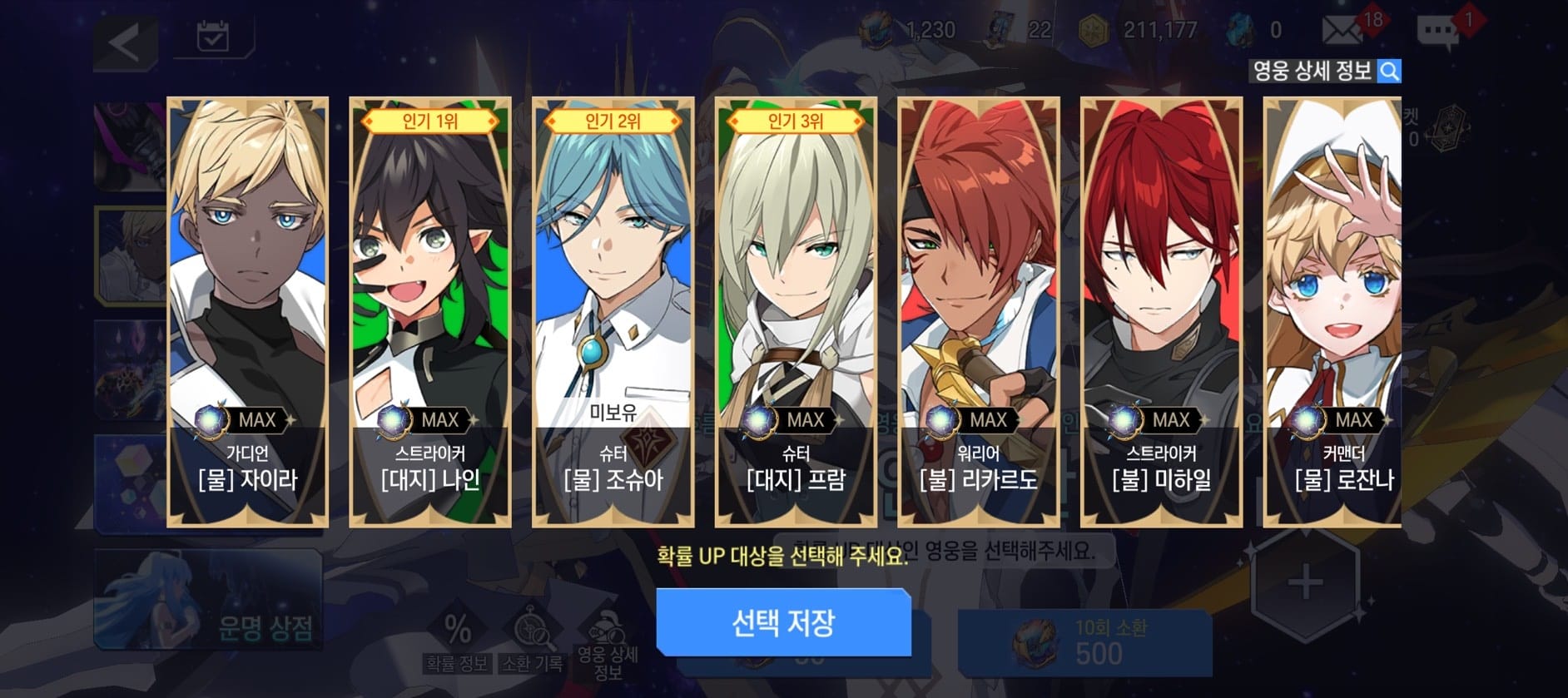 - 선택된 영웅은 소환될 확률이 증가합니다.