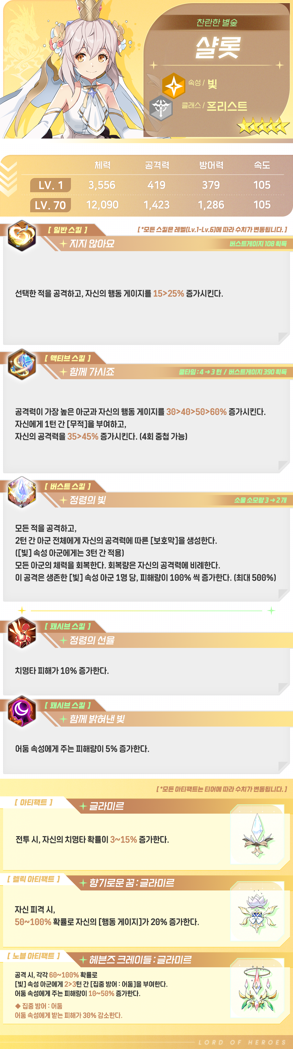 - 4/16(수) 정기 점검을 통해 [빛] 샬롯의 밸런스가 수정되어 이미지가 갱신되었습니다.