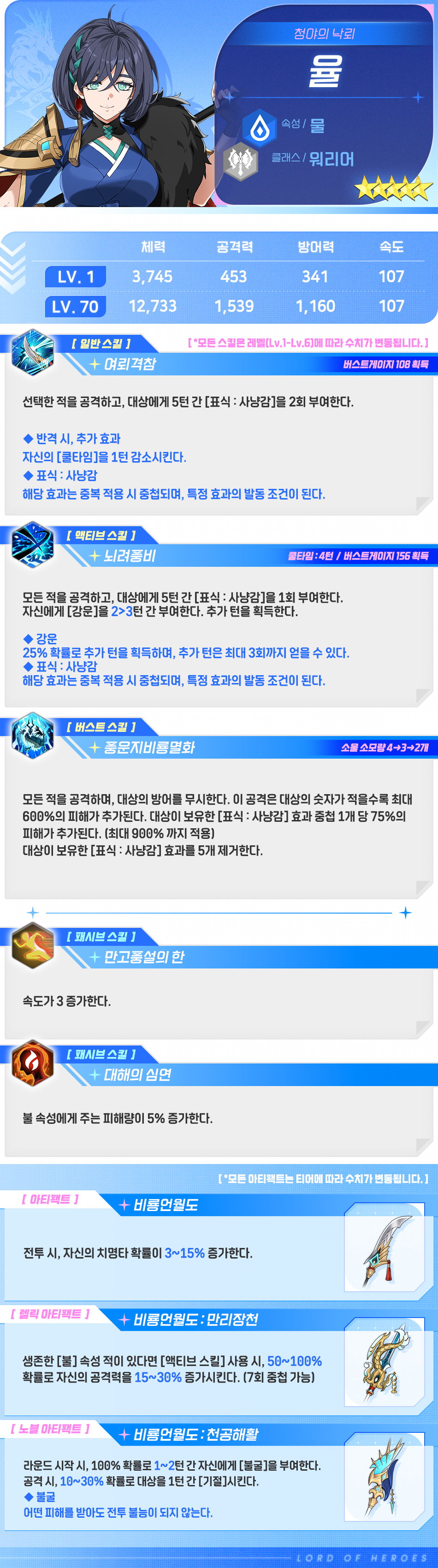 ※ 70레벨 능력치가 각성 후 능력치로 기재되어 있어 각성 전 수치로 수정되었습니다.