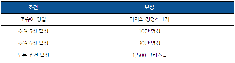 ※ 각 조건 보상은 계정당 1회만 수령하실 수 있습니다. (불, 물 속성 둘 중 하나)