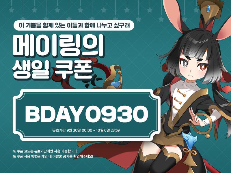 ※ 메이링 생일 쿠폰은 9월 30일(수) 00:00 (UTC+9)에 본 게시물을 통해 업데이트 공개됩니다!