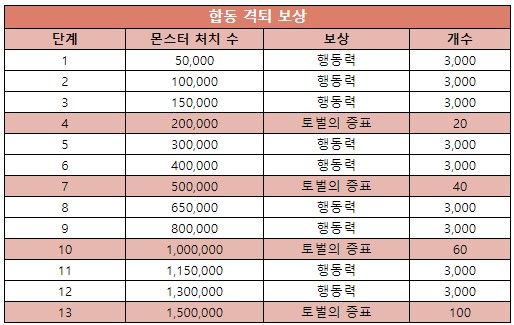 - 페스티벌 종료 시, 미사용한 토벌의 증표는 수량에 비례하여 개당 500 골드로 자동 교환됩니다.
