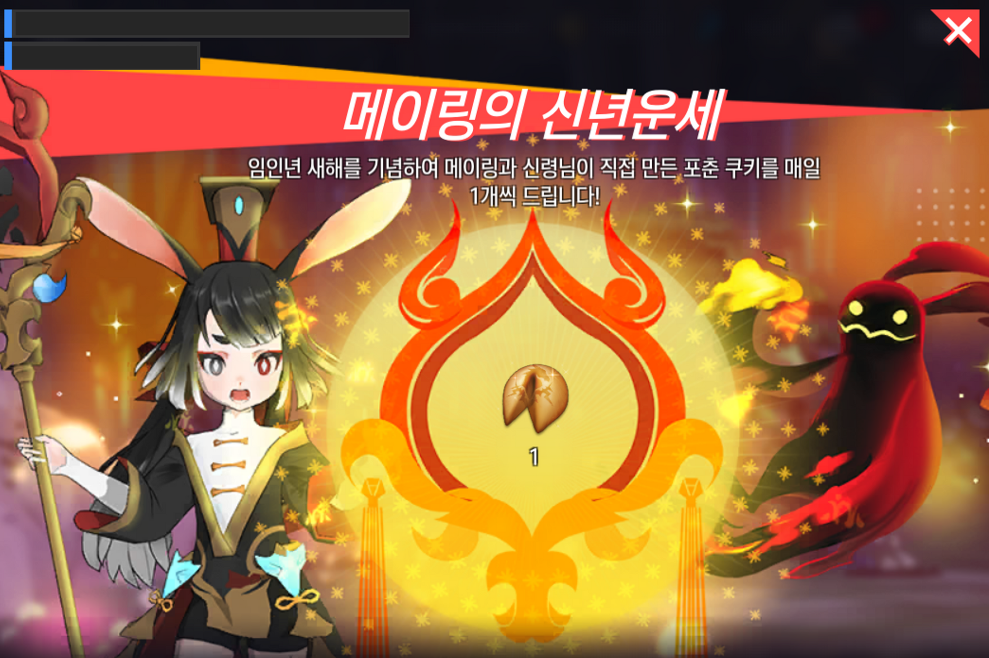 새해를 기념하며 메이링과 신령님이 준비한 포춘 쿠키를 지급해드립니다.