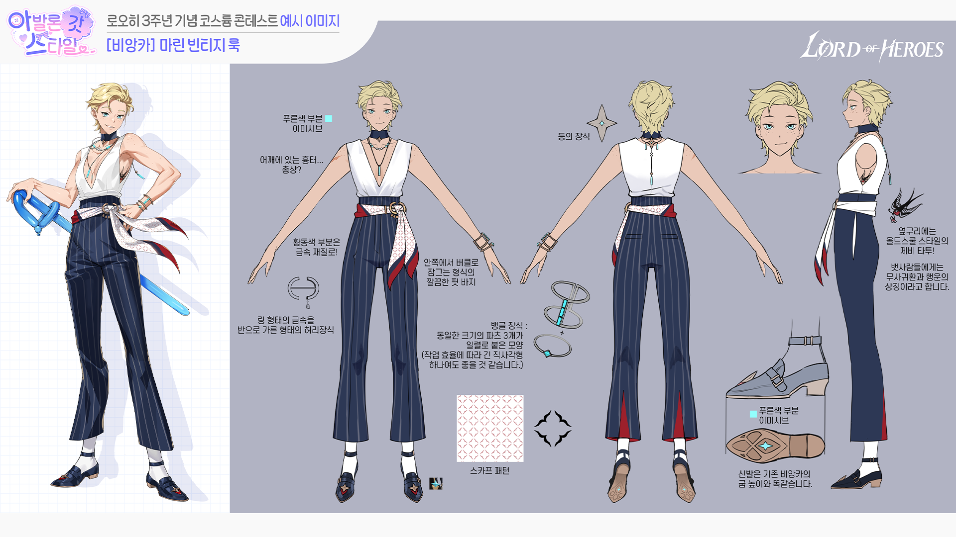 - 공지의 ‘제출 양식’에 맞추어 ‘영웅 1인’의 코스튬을 디자인해주세요.