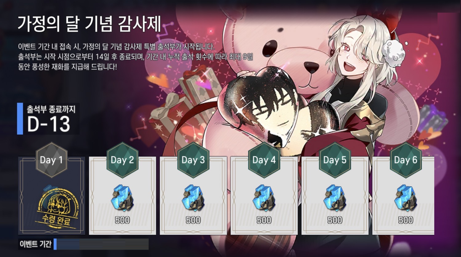 - 안내된 이벤트 기간 중 접속 하시면, 이벤트 출석부가 활성화됩니다.