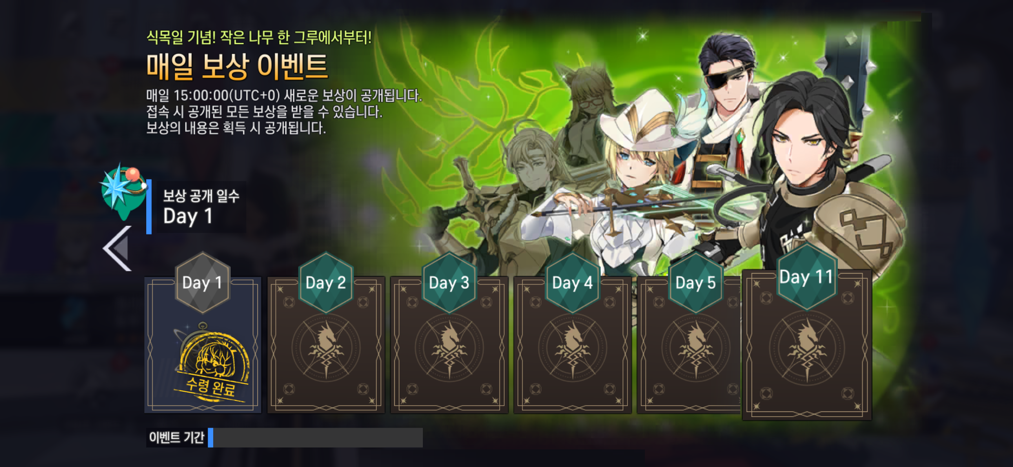 - 보상은 사전에 공개되지 않으며 매일 오픈 시 내용을 확인할 수 있습니다!