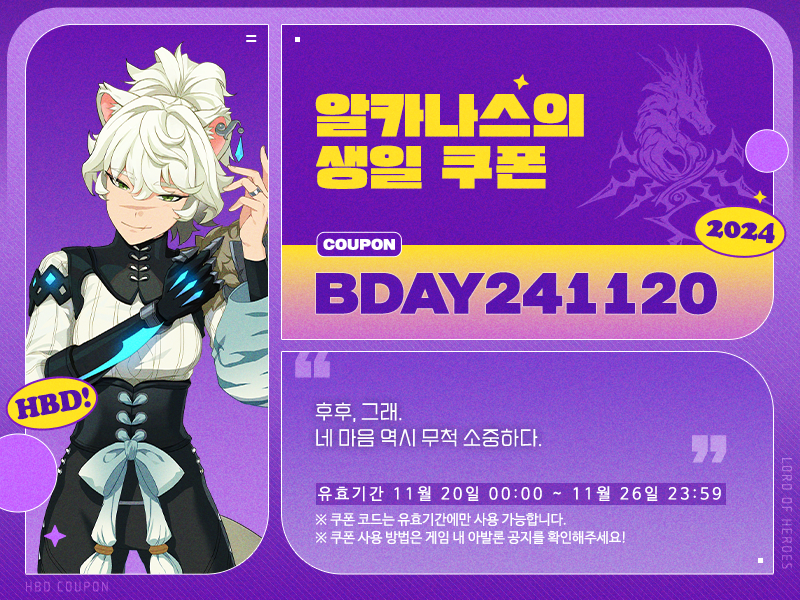 로드, 11월 20일은 알카나스의 생일입니다!