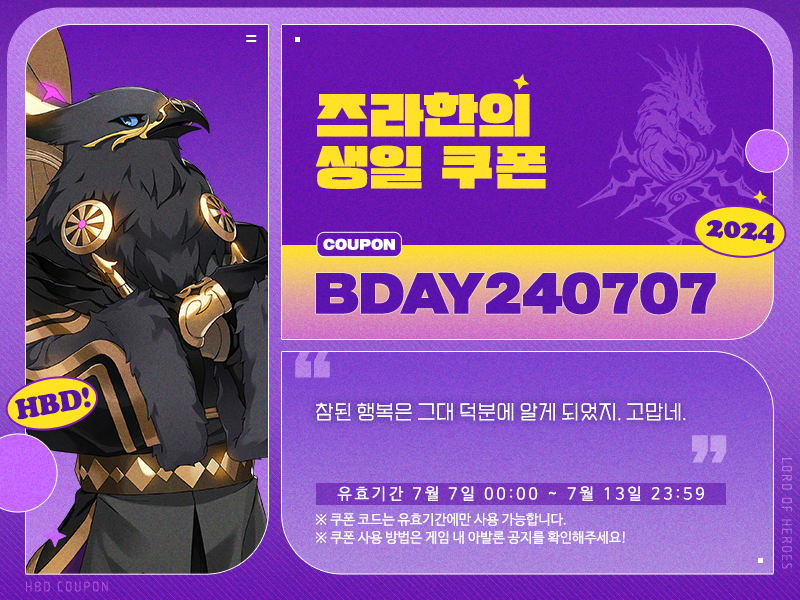로드, 7월 7일은 즈라한의 생일입니다!